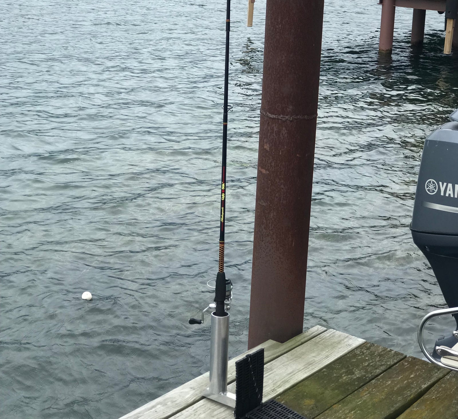 Aluminum welded, corrosion-free dock holder designed to securely hold any fishing rod upright. Wedge supports fit all dock board gaps, providing a tested, hands-free solution.